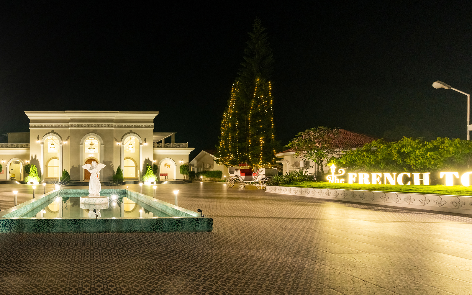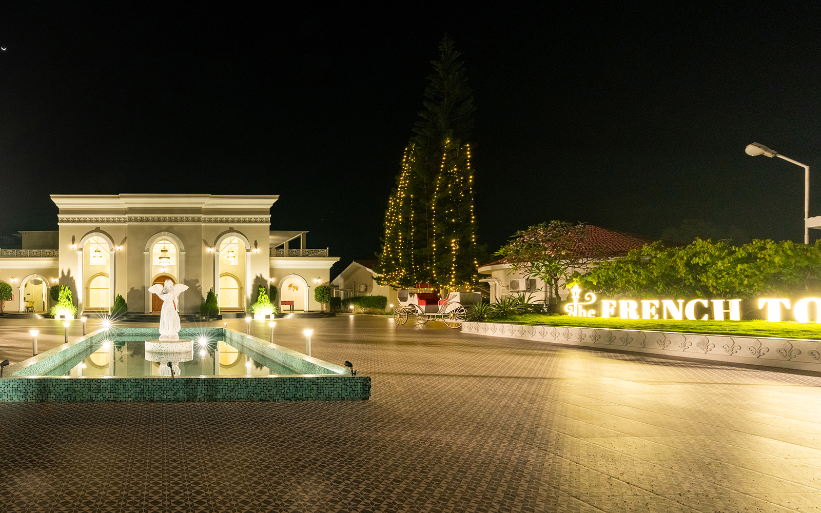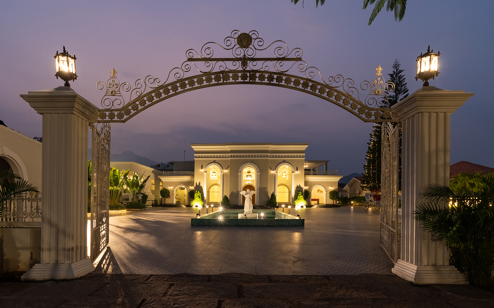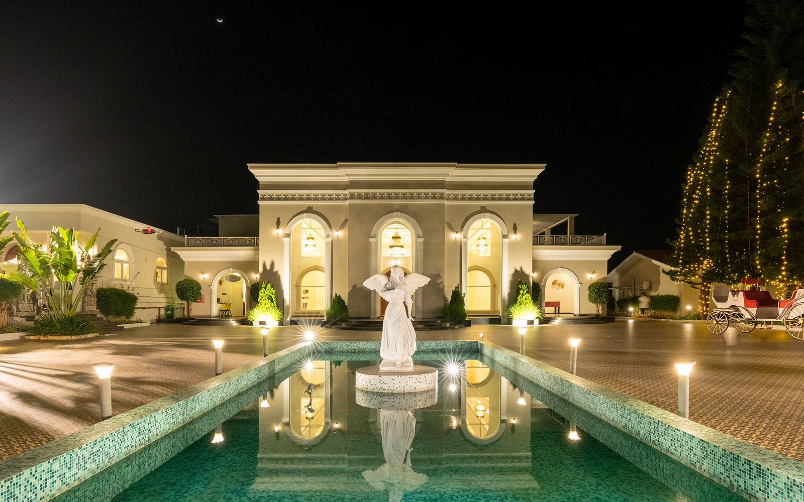 Our Angel Pond Area has a serene ambiance with a stunning 17-foot-wide and 40-foot-long pond with an angelic centerpiece that sets the stage for your event. This versatile space can accommodate up to 600 guests in a theater-style seating arrangement or 250 in a cluster setup, making it an ideal choice for weddings, corporate events, and social gatherings.