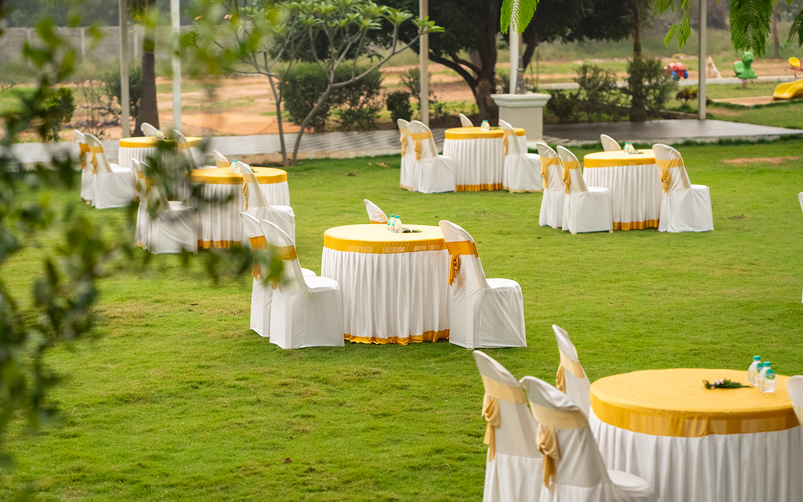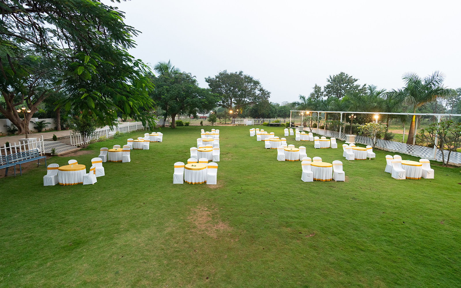 The embrace of our expansive Grand Lawn Stage features a 40-foot-wide stage and a sprawling lawn area that can seat up to 1,200 guests in a variety of configurations. This includes 1200 in a theater style, 1200 in a cluster style, 1200 in a classroom style, 170 in a boardroom style, 170 in a fishbone-style, and 185 in a U-shape seating arrangement. With a 120-foot-long buffet counter, this venue is perfect for large-scale events, conferences, and outdoor celebrations.
